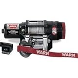 | ✚✚✚ Warn ProVantage 2500 Winch Mini-rocker control switch with plug for corded remote (remote sold separately). Three-stage planetary gear train for smooth, efficient operation. Ergonomic clutch handle. Patented roller disc brake for outstanding control while winching. Fully sealed to keep the elements out. All-metal gear housing and gears. Warranty: Limited lifetime, 3 year electrical (North America). Winch Specifications: Rated line pull: 2500 pounds (1134 kgs). Motor: 12V DC, 0.9 hp (0.7 kW) Permanent magnet, sealed. Primary control: Handlebar mini-rocker with socket. Gear train: 3-stage planetary. Gear ratio: 154:1. Clutch (Freespool): Sliding pin and ring gear. Brake: Roller disk. Drum diameter / length: 2.0" / 2.9" (52 mm / 74 mm). Rope: Wire, 3/16" x 50' (4.8 mm x 15 meters). Fairlead: Roller. Recommended battery: 12 Amp/hr minimum. Duty cycle: Intermittent. Battery leads: 8 gauge. Finish: Black powder-coat. Warranty: Limited lifetime. Electrical warranty: 3 year. Winch dimensions: 13.1"L x 4.53"D x 4.69"H (333 mm x 115 mm x 119 mm). Mounting bolt pattern: 3.0" x 4.87" (76 mm x 124 mm).